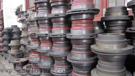 羅茨風(fēng)機機殼內(nèi)部裝有一對轉(zhuǎn)子部,轉(zhuǎn)子部是由葉輪和軸經(jīng)熱